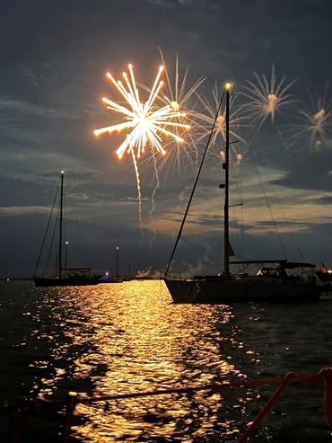The afternoon begins with a thrilling sail from Vineyard Haven Harbor towards Edgartown. Take in the coastline of Oak Bluffs harbor and the famous State Beach as we glide by. We’ll wrap up the sail by anchoring the boat for a scrumptious hors d’oeuvre platter and a stellar sunset view over the sound. The Martha's Vineyard 4th of July fireworks are staged on a barge just outside Edgartown Harbor and we’ll pick a spot just for you – close to the action! When the sun goes down, the day culminates in a snap, crackle, pop and plenty of ohhhhs and ahhhs! This Martha’s Vineyard tour is a one-way sail from Vineyard Haven Harbor to Edgartown. Hors d'oeuvres, soda, water and ice are included; guests are welcome to bring additional foods and beverages.