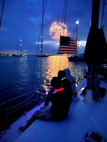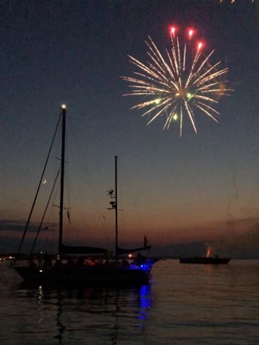 A Martha's Vineyard 4th of July is an event like no other. Experience the fireworks with us from the best seat on the island! Martha’s Vineyard island first celebrated the holiday with a parade in 1844 and the festivities keep getting better! Sure, you could commandeer your patch of lawn and visit Edgartown for the annual parade with crowds and floats in force, but the best way to view the spectacular fireworks show overlooking the Edgartown Lighthouse & harbor is aboard a Martha’s Vineyard sailing charter. No crowds, just your own front row seat!